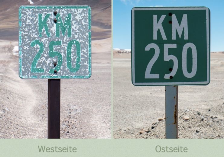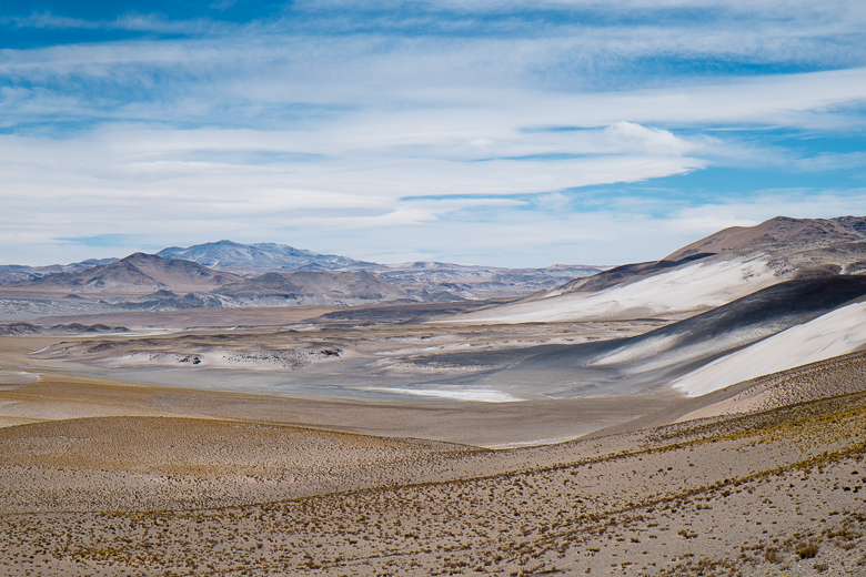 Der Plan geht auf. Als wir in Copiapo ankommen, ist der Pass offen. ›Das Christkind‹ hat seinen Spass am Schnee verloren und sich ein neues Spielzeug gesucht. Als wir langsam auf 4000 Meter hochkurbeln, schickt es uns den Wind. Schön in West-Ost Richtung. Wir segeln regelrecht über den ersten Pass. Hoch und immer höher. Beim Salar de Maricunga gibts den Stempel in den Pass und dann fliegen wir hinaus in die Weite der argentinischen Puna. Hätte El Niño eine Fanpage auf Facebook, wir würden sie liken.