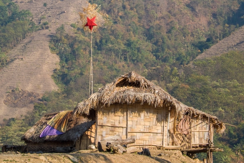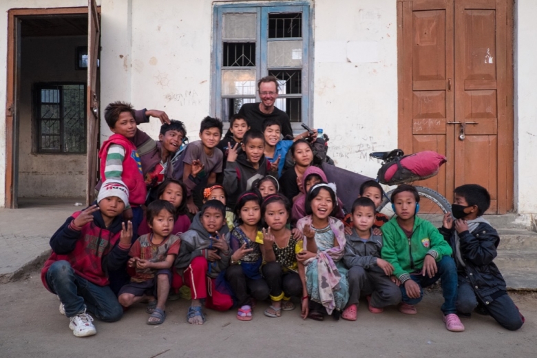 Touristen sind immer noch ein seltener Anblick im nordöstlichsten Bundesstaat Indiens. Und dann noch solche auf dem Fahrrad! Der Aufwand eines Spezialpermits, fast keine Infrastruktur und wenig Informationen machen Arunachal Pradesh zu einem weissen Fleck auf der touristischen Landkarte. Hier erleben wir, wie sich das Reisen vor fünfzig Jahren angefühlt haben muss. Wir machen den Schulvorsteher aus und erhalten rasch die Erlaubnis, in dem kleinen Klassenzimmer zu zelten. Die Schule ist eine Boarding school, eine Art Internat, wo die Kinder zwischen vier und zehn Jahren, Mädchen und Jungen getrennt, in einem Langhaus am Boden schlafen und nur einmal im Monat übers Wochenende mit einem mehrstündigen Fussmarsch in die kleinen Bergdörfer und zu ihren Familien zurückkehren. Hunderte von Augen folgen uns beim Aufstellen des Zeltes. Die Gesichter haben so gar nichts mehr mit den Indischen gemeinsam. Hohe Wangenknochen, Mandelaugen, dunkle, glatte Haare, olivebraune Haut. Dschungelgesichter. Gesichter des Nyishi Stammes.