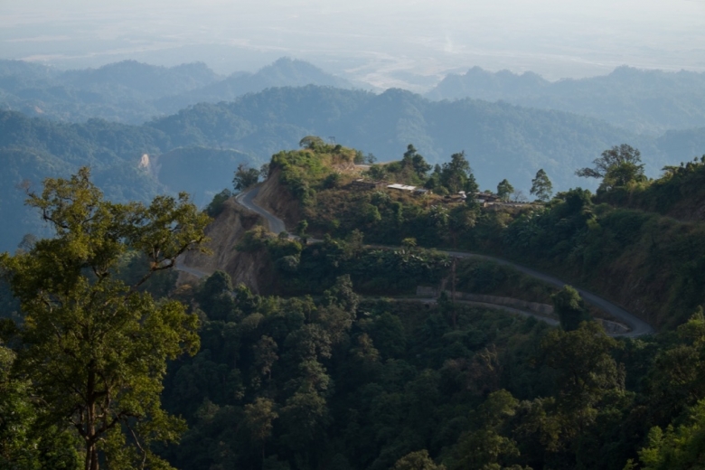 Durch Arunachal wird ein Highway gebaut. Er ist breit, viel zu breit für die steilen Hänge und engen Schluchten. Zehn Bagger fressen sich durch die Berge, hinterlassen eine aufgerissene Wunde in der Landschaft, die bis zum nächsten Monsun nicht heilen wird. Der Regen wird einsetzen und die Hänge werden bluten. Schon jetzt müssen wir Erdrutsche umfahren und das Wasser in den Flüssen ist braun von der Erosion. Ein Schild steht am Strassenrand, schwarze Schrift auf gelbem Grund: "Wir verbinden Menschen mit dem Mainstream". Die Strasse wird schneller sein, gerader, moderner. Sie bringt die Zukunft. Und dann, als hätte jemand ein Bild in Photoshop falsch zusammengesetzt, endet die Baustelle, rückt das Dickicht um uns näher, holpern wir mit unseren Fahrrädern auf einer sich windenden, schmalen und löchrigen kleinen Dschungelstrasse weiter durch das Tal. Wir haben die Spur gewechselt. Wir radeln in der Vergangenheit.