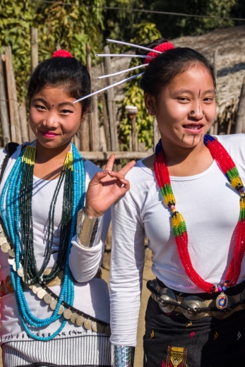 In Arunachal leben sechsundzwanzig verschiedene Volksgruppen. Ihre Sprachen, ihre Traditionen, ja selbst ihre Bambushäuser unterscheiden sich von Stamm zu Stamm grundsätzlich. Sie sind eindrücklich, diese Menschen, die seit Jahrhunderten im und von diesem Dschungel gelebt haben. Doch die Begegnungen mit älteren Leuten, die noch die traditionellen Trachten und den ursprünglichen Kopfschmuck tragen, oder wie die Atapani Frauen Zeichen ihrer Stammeszugehörigkeit ins Gesicht tätowiert haben, sind selten. Im Alltag gleicht sich eine junge Generation Arunachal Pradeshs immer mehr dem "Mainstream" an, versucht dazu zu gehören und hineinzupassen ins Bild des modernen Menschen. Und so kommt es auch hier, dass sich die Zeiten vermischen, dass sich Jugendliche am Republic Day in Militärleggins stürzen und gleichzeitig den Schmuck ihrer Grossmutter umhängen. Dass sie mit Eyeliner die alten Tätowierungen ihrer Vorfahren auf Nase und Kinn zeichnen, aber anstelle von traditionellen Schritten neue Kreationen zu Bollywood Musik tanzen. So ist Arunachals Gegenwart. Gefangen zwischen Tradition und Moderne. Was überwiegt, wenn die Zeit weiter fliesst? Was wird neu geschaffen und was geht verloren?