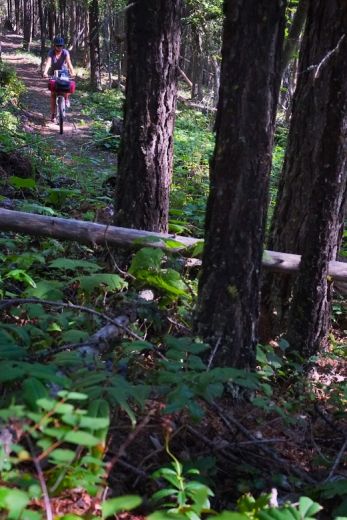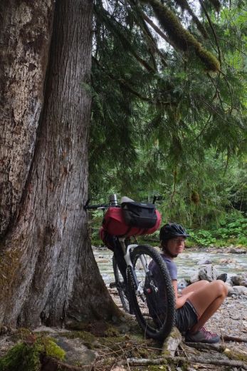 Von nun an sind die Tage gefüllt. Entscheidungen folgen auf Entscheidungen, das Radeln wir zur Nebensache. Wir gehen unser Material durch, ersetzen kaputte Sachen, verbessern, was noch nicht optimal ist. Den Kopf voller neuer Gedanken und Pläne fahren wir den Trans Canada Trail Richtung Vancouver - und sind positiv übberrascht. Oft folgt er alten Zugtrassen. Die Steigungen sind sanft, die Abfahrten ruhig. Wir überqueren Flüsse auf hölzernen Bahnviadukten und überwinden im Wege stehende Berge für einmal nicht an der höchsten Stelle, sondern nach einem kaum merkbaren Anstieg durch alte Tunnels. Und je weiter wir nach Westen kommen, je mehr verändert sich auch der Wald. Wir fahren an mächtigen Zedernbäumen vorbei, Farne und Moos bedecken den Boden, lange Flechten hängen von den Ästen. Es riecht nach Erde, die Luft ist sauber und frisch. Ein Fangorn wie aus dem "Herr der Ringe" - alt, sehr alt - fehlen nur noch die Baumhirten, die ihres Weges ziehen. Doch vielleicht gibt es sie ja sogar, irgendwo gut verborgen, in dieser endlosen Wildnis.