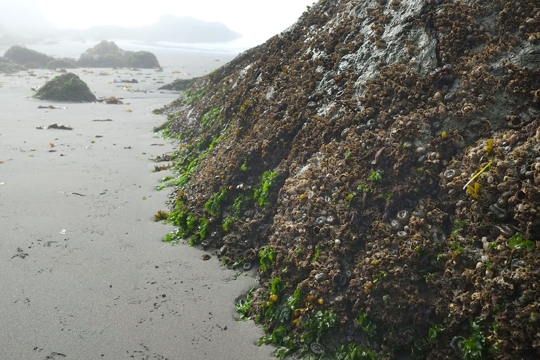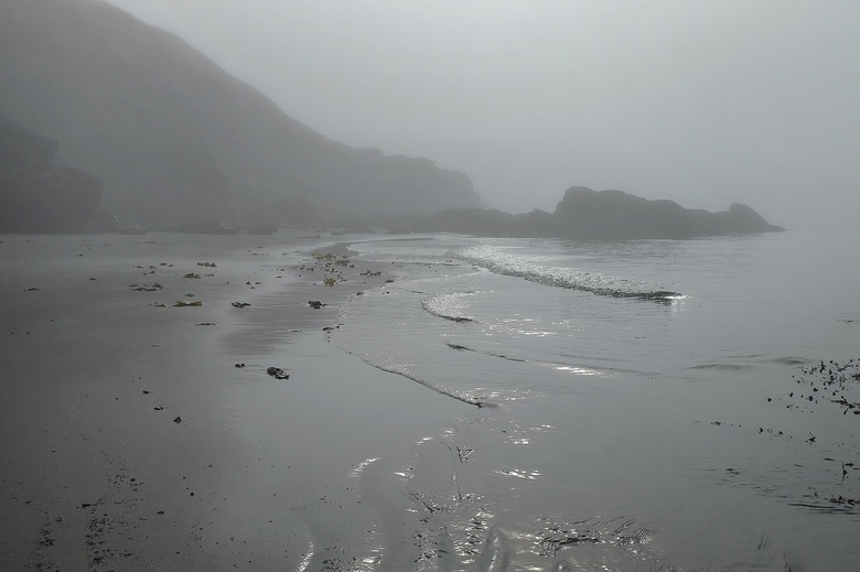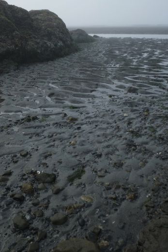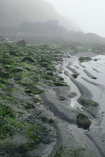 Das Kreischen der Möwen weckt uns am Morgen. Es ist Ebbe. Nebel verwischt die Konturen, taucht Felsen und Strand in ein monochromes Stilleben. Das Meer ist weit zurückgewichen und hat einen reich gedeckten Tisch hinterlassen. Seetang, Krebse, Muscheln. Wir laufen den Strand entlang und lassen die letzten Monate an uns vorbeiziehen.