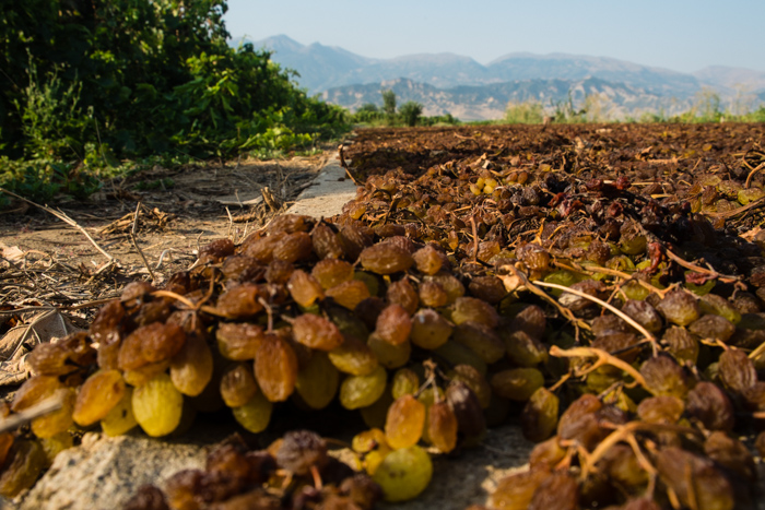 For days it smells of fermented grapes: sour, heavy, insistent. In Western Turkey, under the merciless sun are drying the raisins of the world. Spread out on towels on concrete places, along the four-lane interstate highway or in front of houses. Initially, green and sweet as sugar, then shriveled and tart, dry and delicious at the end. The scent travels with us across Turkey.