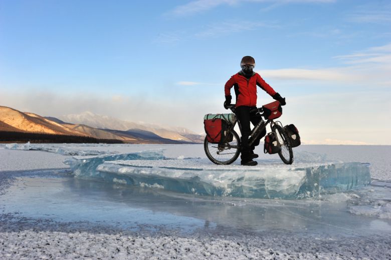 We haven't told it to anyone. They would have worried too much. It was too uncertain. And yet, if one has carefully studied our website, maybe one would have noticed. In the link list. Collected pages about cold temperatures, with the bike in the winter over frozen Lake Baikal. No, not that we want to go back to Russia. But here in the north of Moron, on the border with Siberia there's a lake. The Khovsgol Nuur. It is crystal clear, a small brother of the Baikal, and in winter it's traveled by cars and trucks. For that we've cycled in the past few months through the cold. Actually, we always had this goal. It's still a bit early, now in January. But people think that the ice is a foot thick. Enough for motorcycles and lighter vehicles. Enough for our bikes.