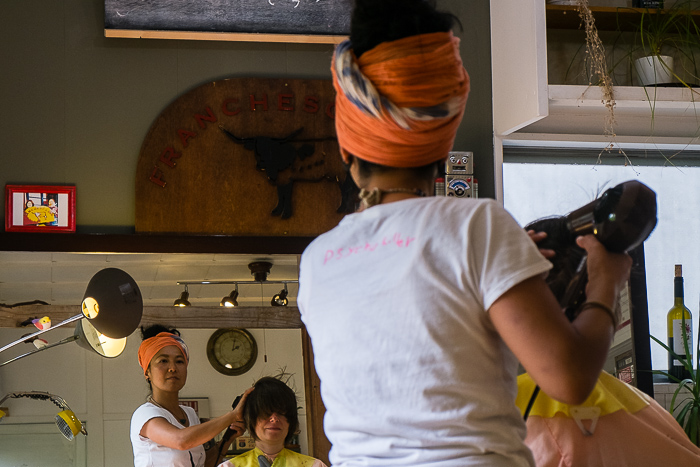 The clouds hang low in Fukuoka, it's gray. Slowly the monsoon finds its way north. But we can't complain. These are the only two days of rain during our stay in Japan. We meet Hiroshi, spend a nice evening together. He has worked as a teacher until he god enough from the conditions of his work. Caring the class from the morning at eight to the evening at six o'clock. Then still preparing the lessons for the next day. On weekends mandatory sports competitions were held. When the students skip school, he had to go personally to their home, to motivate them again for the classroom. There was no time left for himself. Giving up the job in Japan is a huge loss of image. Burnout is a non-issue. In a few weeks he wants to go to Europe for cycle touring. Aki, his girlfriend, cooks us a delicious dinner. She's a hair stylist and the next day she gives Brigitte in her characterful saloon a Japanese haircut.
