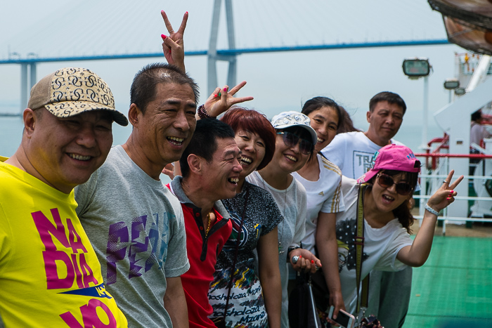 A wax yellow sky. Smog from Korea and China, that reaches the coastal towns in Japan in the summer months. We board the speedboat to Busan. Mega cities are awaiting us.