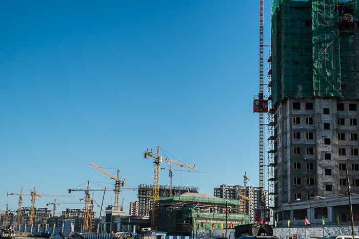 White and blue. Cirrus clouds on the horizon. Slowly the landscape becomes wider, the air clearer. A week with strong head winds and long cycling days through a completely over-exploited agricultural zone is behind us. We have crossed cities that looked as if cargo planes have dropped a few high-rise buildings, which are now waiting to be inhabited. The old Royal Palace in Shenyang, a lone witness of the past, surrounded by an explosion of concrete. Here, the China of tomorrow is growing. Inner Mongolia recorded the strongest economic growth of the whole of China in recent years. The driving force is the coal mining. The price: Destroyed pasture land, water shortage and social tensions. Black.