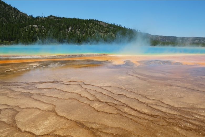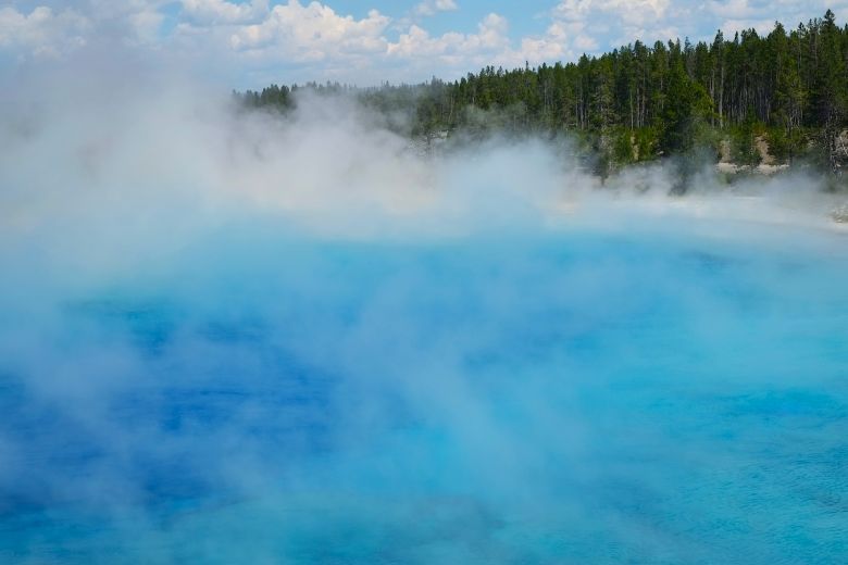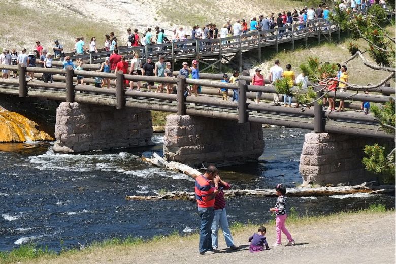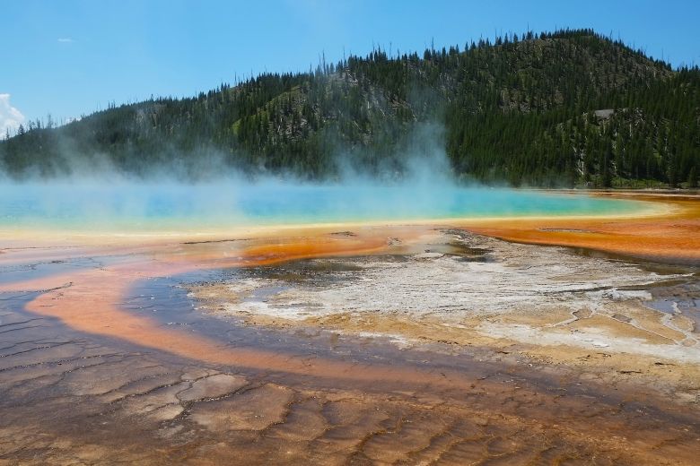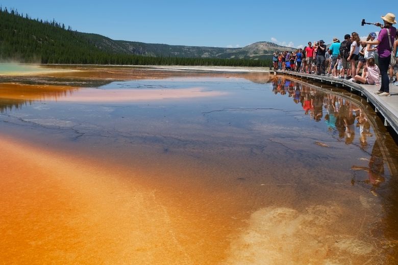 In Yellowstone, we feel like we were in China, Korea, India, France and America at the same time. Thousands of people visit the park on the weekend of 4 of July, the American national day. They step on each other's toes on the catwalks in front of the geysers and fight for the airspace above their heads with their selfie sticks. And most of them are traveling in an over-sized motorhome - with a trailer for the ATV and when it comes up even with one for the boat. The roads are just as congested as on Easter at the Gotthard tunel. In the evening when we were in tent, we feel like in Sicily when we had once camped on a traffic island in the middle of a main road. Again, we have the constantly hum of traffic as a lullaby in the ear. It's funny that entire regions are destroyed by fracking to produce the gasoline, so that those diesel monsters can then visit protected nature elsewhere, we ponder. It's funny that those who want to see unspoiled nature have to pay for the park, and not those who destroy the environment.