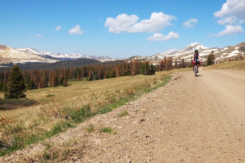 And so it is. In the morning break we have blown dandelion seeds in the air, now the mountain meadows are covered with yellow dots. A small stream gurgles cocky over smooth pebbles. The water is freezing. Meltwater. Just right to wash the salt crust off the face and arms, before descending again into the next valley. The first days on the Great Divide Mountain Bike Route, which is leading from New Mexico to Canada on dirt roads and trails, are a constant up and down. When we look at the height profile in the evening, it resembles a compressed ECG. Steep climbs, steep descents, the daily stages add easely up to 2000 altitude meters. There are lonely forest roads, often dusty and dry, then stony ATV tracks that lead through mud and last remnants of snow. And again, forest as far as the eye can see. Somehow we had imagined the Rocky Mountains differently - rocky, powerful, imposing. We are at over 3000m and yet we are surrounded by hills. Steep hills, but only hills. It lacks the snowy high mountains in the background.