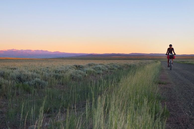 In Wyoming is the Great Basin. Almost every cyclist is complaining about. Heat, drought, wind. Will there finally be a bit of adventure? After all, there are cyclists who warn us, and the judgment of a cyclist is mostly true. But everything only half as bad! Gentle, rolling hills, silvery sage bushes between lilac blooming lupines, finally yellow prairie grass til the horizon. A nice change from the never ending forest. We start in the darkness, after all we have learned from the wind in the Puna. The sky discolors in a gentle pink, a few antelopes flee when we start cycling. But unlike the Puna wind the Basin wind awakens with the first sunbeams. And we have it frontally. Pedaling, riding in the windshade of the other, cursing - and in between dreaming of Mongolia.