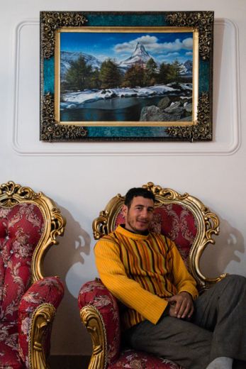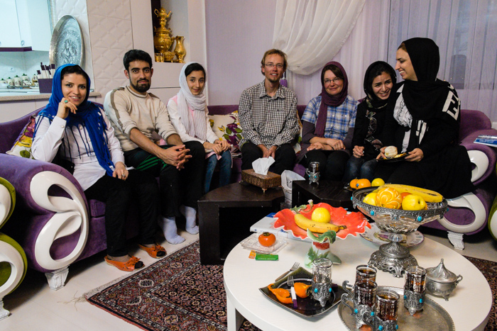 1.12.13 A woman talks to Brigitte on the street, organizes her sister as a translator. A little bit later we sit in an elegant living room and nibble sweets. All women are wearing the obligate hijab, but soon more and more cockiness gets visible under their headscarves. While I'm staying with the men, Brigitte accompanies the women in the beauty salon, owned by the sister of Mehri, the hostess. Once the women are among themselves, the headscarves disappear, ripped jeans and tight shirts come out. There is laughter, discussing the latest makeup colors and fashion styles, by the way hair will be cut and eyebrows plucked. And in the end they say "... no, no money, you are family", while the black headscarves are pulled back over the head and the women are transformed back into dutiful Iranians.