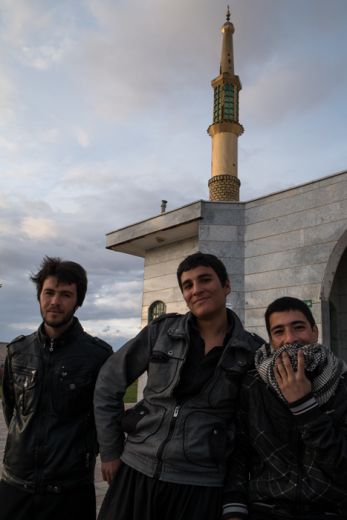 28.11.13 Headwind, an implacable opponent, rips us, rushing in the ears. A crossroads stretches its arms in all directions. Several times cars stop: “How do you do, where are you going, how do you like Iran?” And again and again, " I'm so happy to see you here! Welcome to Iran, welcome to my country!" In the evening we are invited on the spot. We end up in a family of teachers with a lot of power, it is noisy and there is an easy mood. Three generations, twelve people. On the wall hangs a picture of the religious leaders of the country. They have full power even after the election of the new President this summer. In most village entrances there are big posters of them. No eye contact. One looks away, the other can be seen in profile. They want to be seen, no doubt, but themselves they want to see anyone. They are used to look away probably. The family insists they would love them, their leader. Pride in their eyes. Conviction.