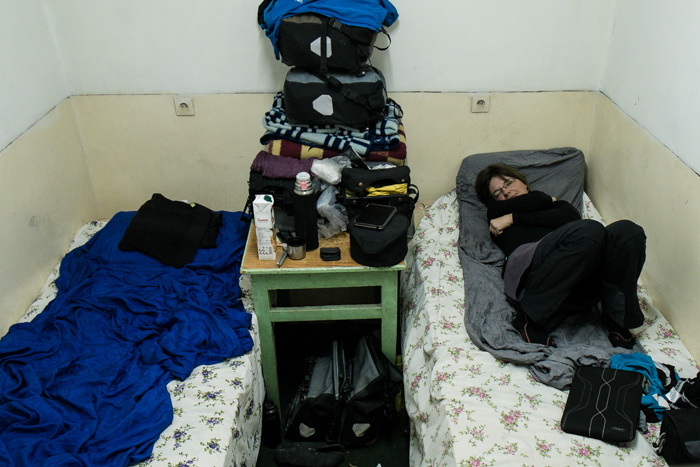 19.11.13 Rain. We remain in Jolfa, 5 dollar hostel. The room is a cell, barely enough place for two beds, a table, a gas stove. On the floor it smells of urine, we hear the neighbor spitting out, for half an hour. On the walls, graffiti on Farsi. We can't read anything anymore, are able to find accommodation or internet cafes only with the help of locals, even if we stand directly in front of it.
