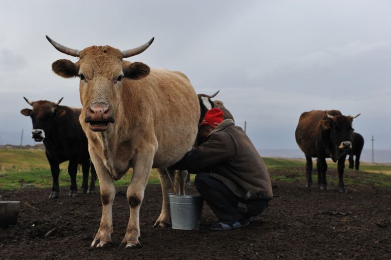 We reach the Kazakh border two days too early. The bike route from Eskilitash to Karkara was only half as long as expected. What should we do? Give a bribe and appear two days too early on the border control? Impudence might work. And if the Kyrgyz let us out and the Kazakhs not in? We would hang in the steppe as Viktor Navorski in the movie The Terminal. Pedal one hundred kilometers in the wrong direction and perhaps find a hotel? Knocking on the door of the house at the last intersection and explain, that we would like to stay here for two days and nights? We try it with the hospitality. The farmers look quite puzzled, but ten minutes later we have our stay. A yellow, discarded bus. We have already spent the night in the most unusual places, but this stay is a unique one. The bus even has a TV. It is raining for two days. The bus is leaking, we have to put some cups under the biggest holes, so the sleeping bags don't get wet, but otherwise it's comfortable. A little Magic Bus. A piece of everyday life at the end of Kyrgyzstan.