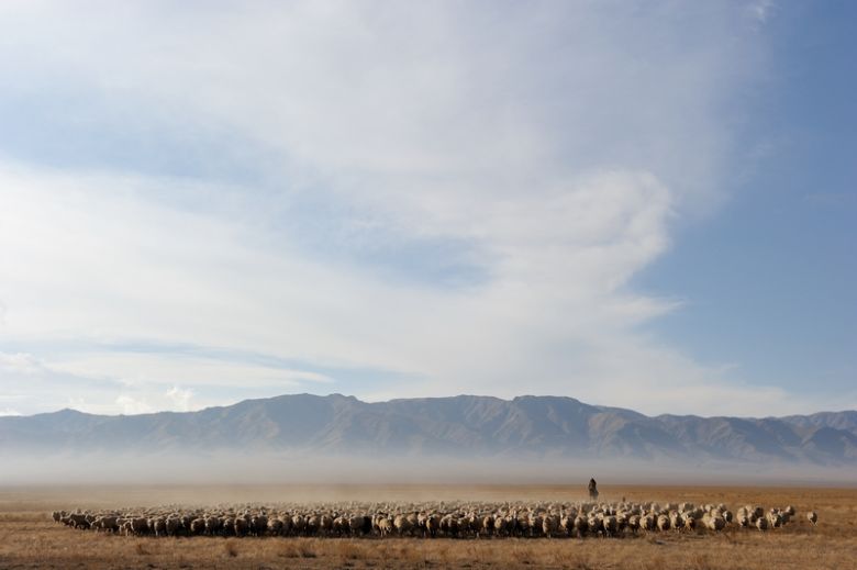 Karkara: border between steppe riders and mountain nomads, between Kazakhs and Kyrgyz. Two nations differed until a few decades only by preference of a different landscape, now separated on the paper. Two huts and a barrier on a perforated asphalt road. A small river. Chingiz Aitmatow let pass the Turkic Horsemen in his books here, in Gulsary he let compete the two peoples as today in an annual Friendship Tournament against each other. In summer yurts are scattered over this wide plain. Are there living Kazakh, Kyrgyz? The 10 October we can cross to the other side of the river. The wind is welcoming us in the width.