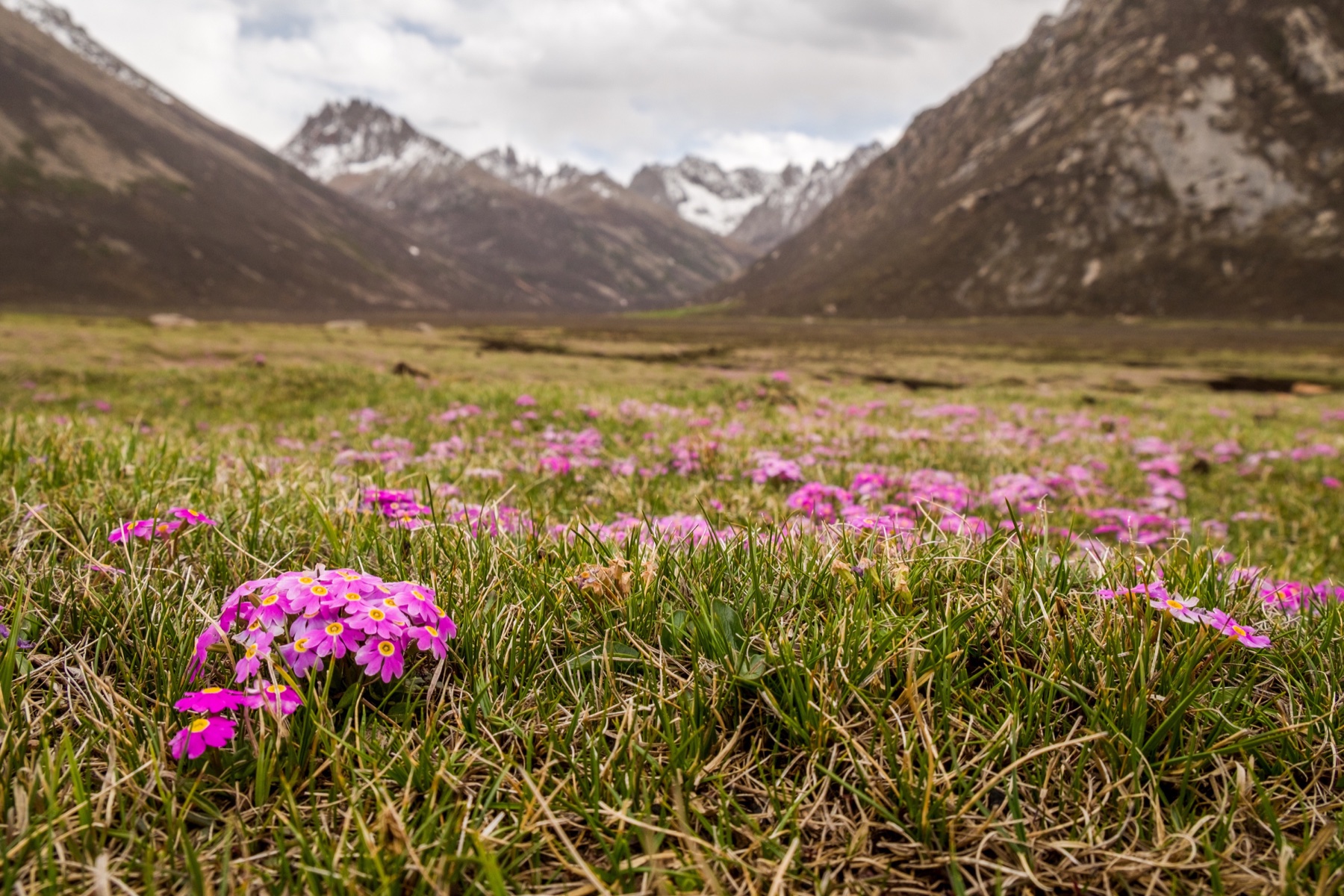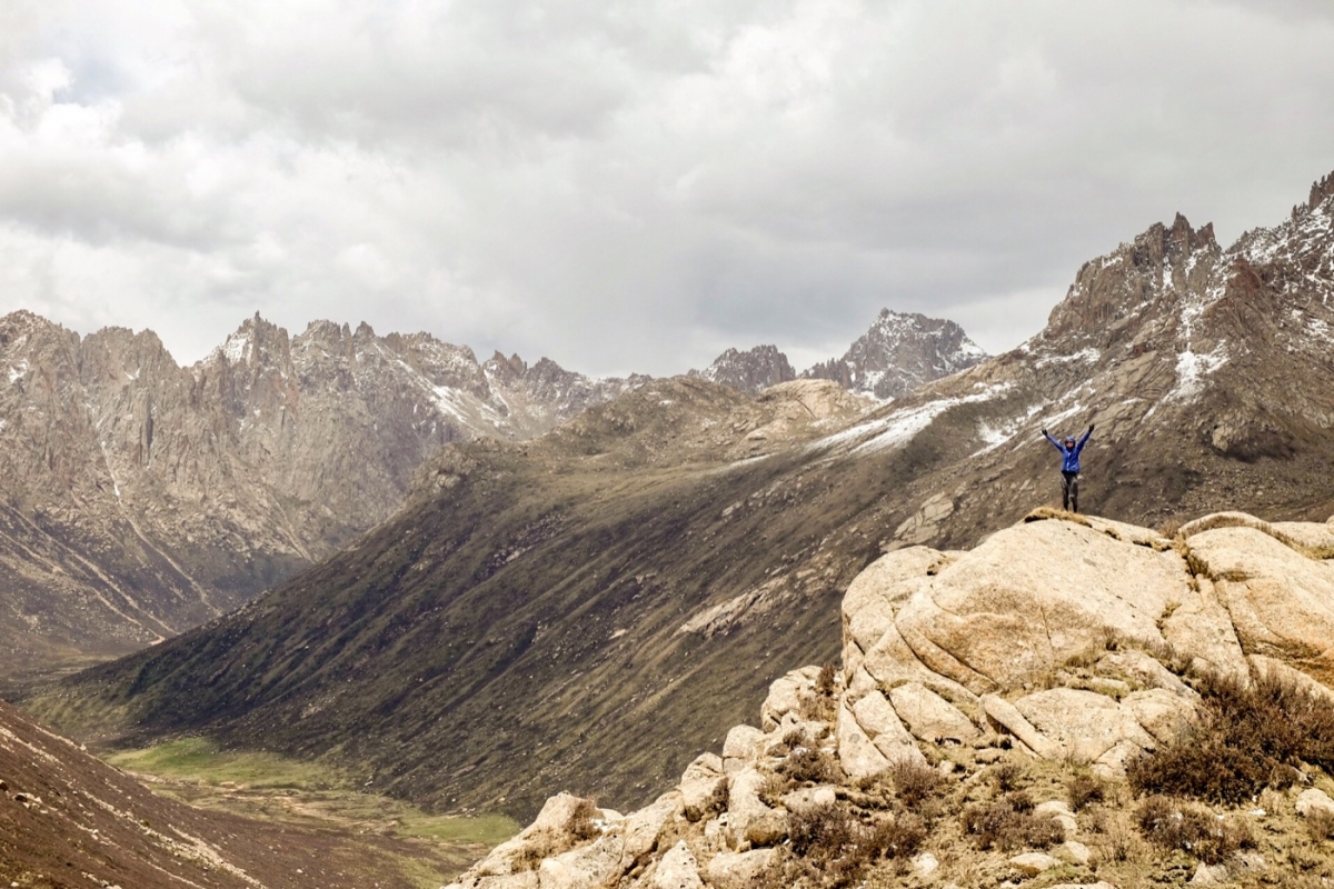 Our head is in the clouds. 4000 meters - and that is not the pass. No, actually it is the lowest point between two passes. To the right, the next rain wall approaches in time-lapse. A gray curtain of rain cords. Frayed at the edges, with a narrow gap in the middle, through which we can catch a last glimpse of a piece of blue sky. Then the colors mix together like watercolor on a paper. The black spreads, devours - and wins. A few seconds later, the wind blows us the first needle-sharp ice drops in the face. The clouds are close, it feels as if we could almost touch the sky.
