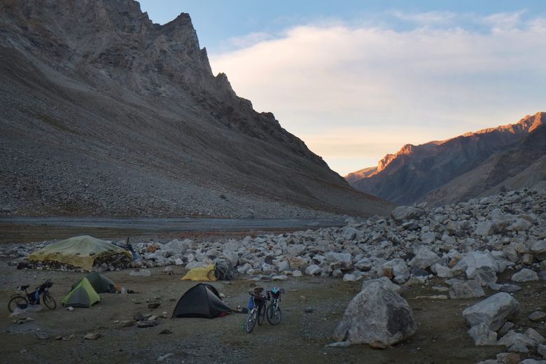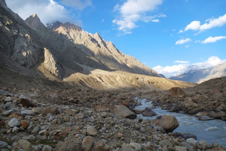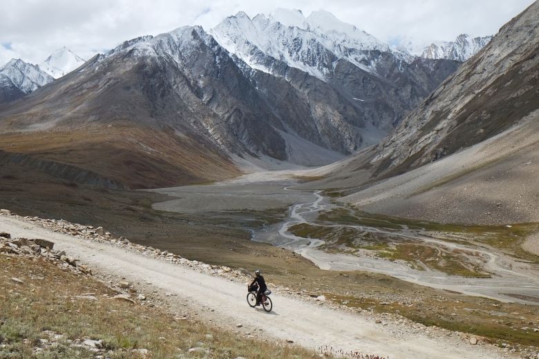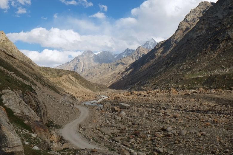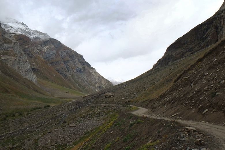 Huge granite rocks, a tearing current, glacier tongues licking almost at the roadside. And somewhere in the middle of this archaic valley a rough and stony track winds up to Kuzum La. It is our last pass in the Indian Himalaya and still one of the most beautiful, even if we are riding it for the second time. With it, we reach Spiti valley.