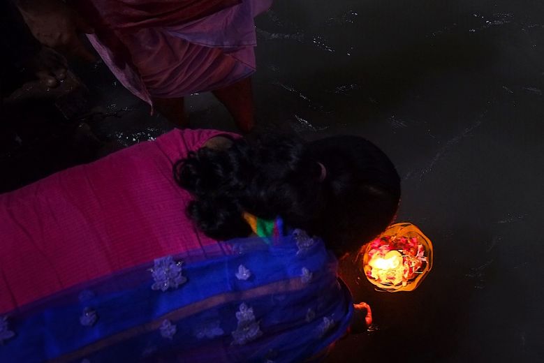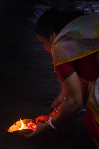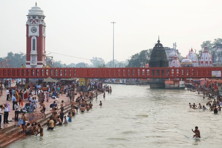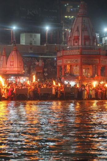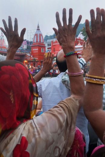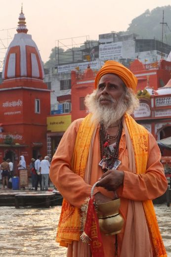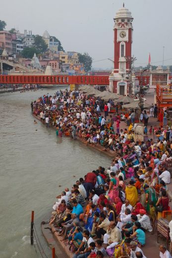 Haridwar. Here the Ganges reaches the Indian lowlands. Thousands of pilgrims gather on the banks of the wide stream. A colored crowd, bathing, praying, and searching for their salvation in the sacred waters. Boats of flowers are sent on their way, orange-dressed sadhus bless the people, burning torches in the humid and hot evening air. Cliché India: Colorful, noisy, dirty, strange - and yet fascinating.